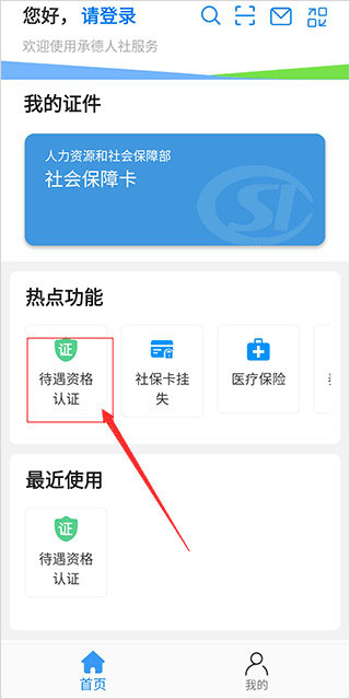 在首页找到“待遇资格认证”选项,点击进入认证页面。