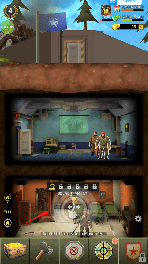 地堡清理完毕后,可安排人员入驻。先选中角色,再点击移动按钮进行调度。