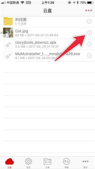 进入目标文件详情页,点击右侧的信息图标(如图红箭头所示)。