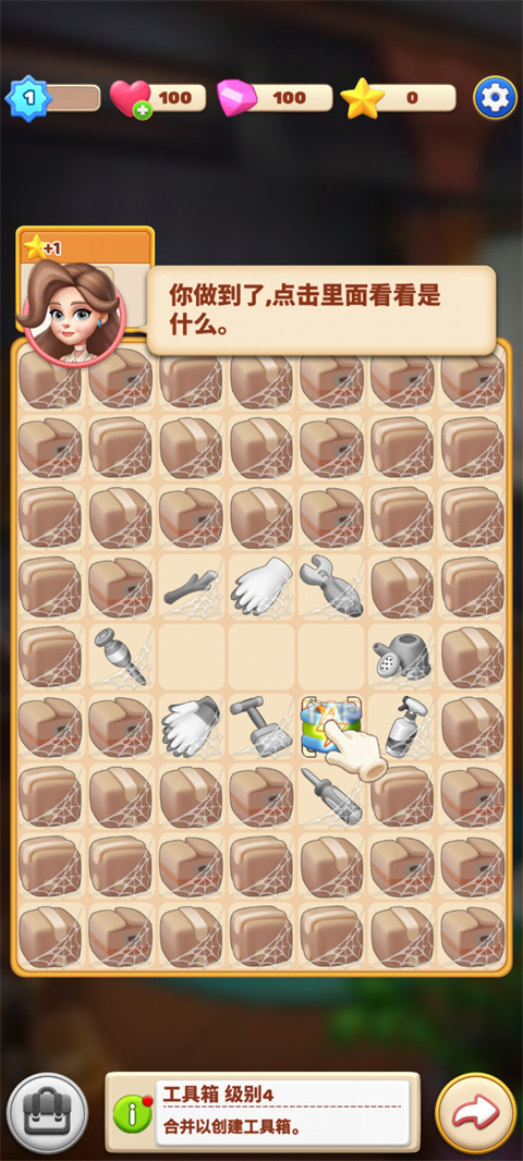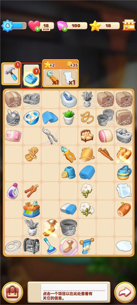 任务完成后会获得黄星奖励,使用锤子工具即可开启房间装修。