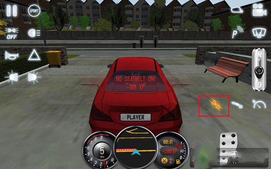 驾驶开始前需系好安全带,屏幕右下角的安全带图标若呈黄色,表示未系好,点击即可完成操作。未系安全带将被扣除100点经验值。