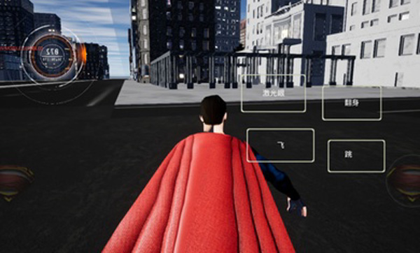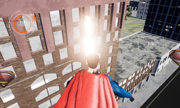 3. 点击激光眼按钮,即可操控超人发射激光,肆意破坏虚拟世界中的建筑与设施;
