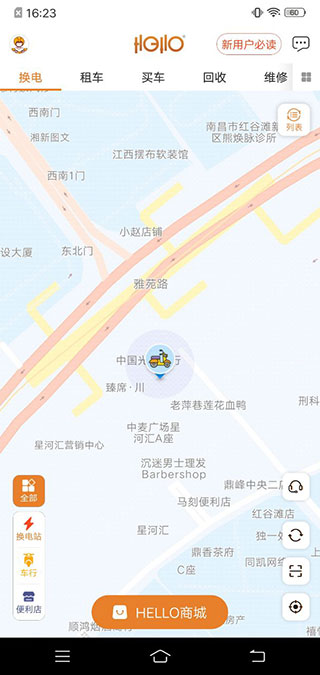 1. 打开哈喽换电app后,系统将自动定位您当前位置,并展示附近可用的换电站信息;