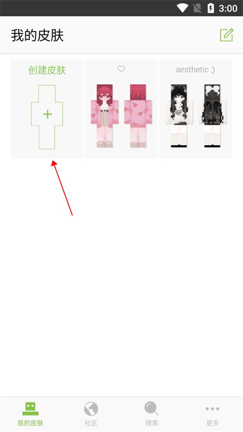 在主界面点击“创建皮肤”,然后选择“来自照片”选项,即可从手机相册中选取任意图片作为皮肤底图,软件会自动适配并生成像素风格皮肤。