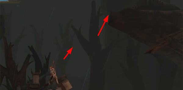 3. 利用左侧平台垫高,向上跳跃至高处平台。