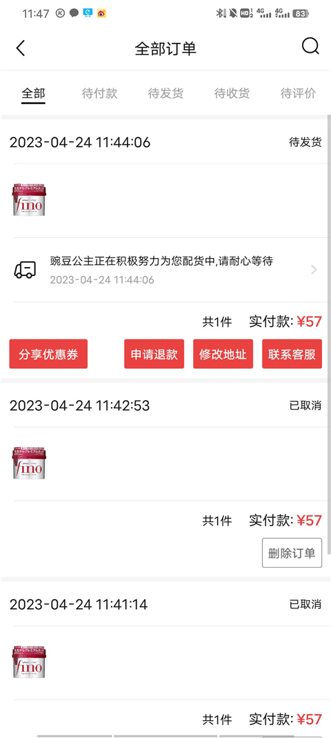 - 若商品已进入拣货打包阶段,退款申请可能失败;
