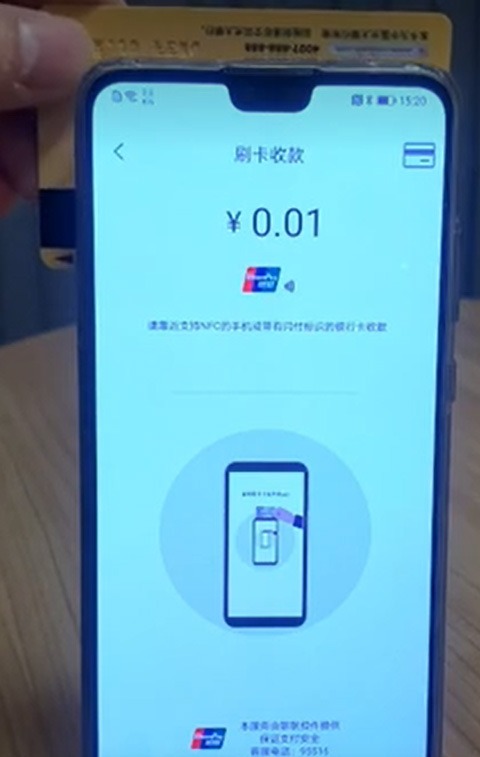 安装完成后,将银行卡贴近手机NFC感应区域,即可完成读卡与交易。