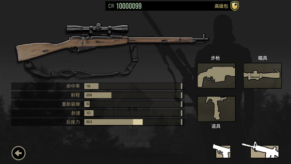 进入“步枪”界面,选择主武器并装配瞄具与辅助道具;