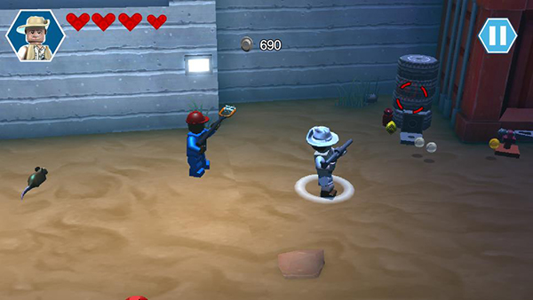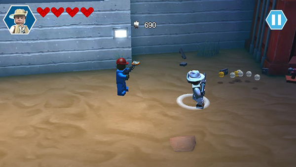 破坏后会掉落金币与乐高零件,靠近即可自动收集。