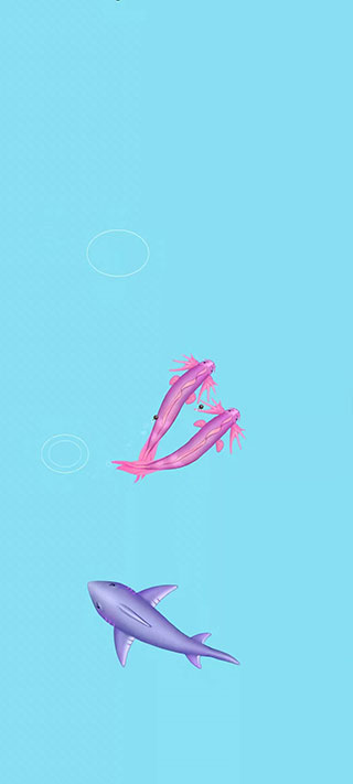 体型越大,遭遇的对手也越强大,操控时务必控制速度,避免一头撞进鲨鱼口中。