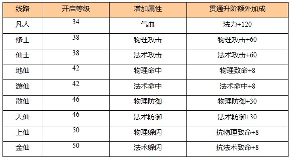不同修仙线路开启等级各异,所附加属性也各有侧重,合理规划方能事半功倍。