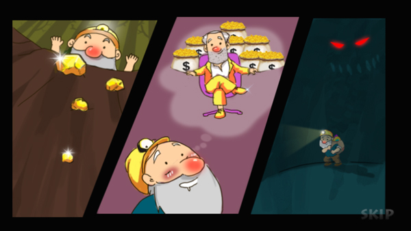 通过点击屏幕释放钩爪,抓取地下矿藏并拉回;