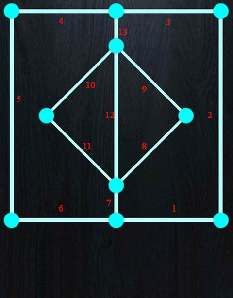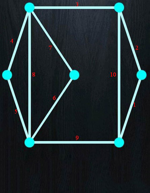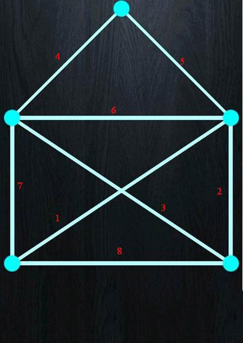 若图形仅有两个奇点(其余均为偶点),同样能一笔画成,此时必须从一个奇点出发,以另一个奇点作为终点。