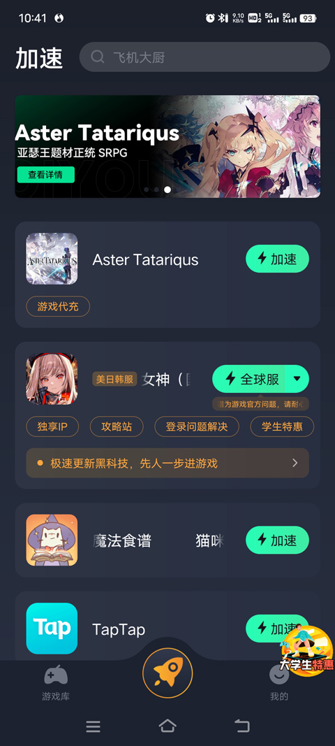 下载AsterTatariqus官方版后,需借助加速器启动游戏。打开奇游手游加速器,搜索并定位该游戏,点击右侧按钮开始加速;