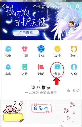 进入装扮页面后,点击底部的“背景”图标。