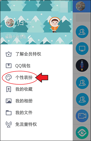 左侧滑出菜单栏,选择“个性装扮”选项。