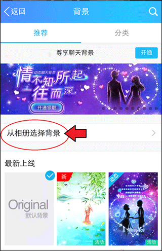 在背景设置界面,选择“从相册选择背景”。