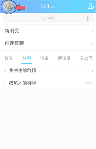 打开手机桌面中的QQ应用,进入主界面后点击左上角头像。