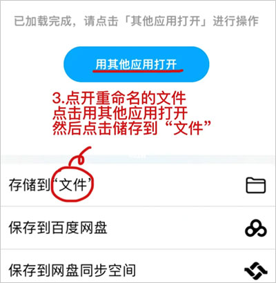 打开重命名后的压缩包,选择“其他应用打开”,然后将其储存到“文件”应用中。