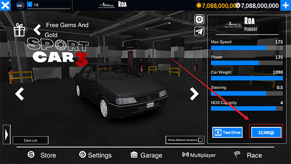 游戏开始后,点击界面指定区域即可进入车辆购买界面。