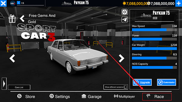 购得新车后,再次点击相同位置可对车辆进行个性化改装。