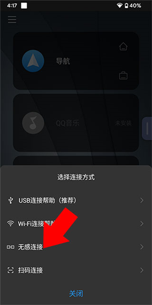确保手机和中控屏的WiFi功能均已开启;返回连接界面,选择“无感连接”选项;