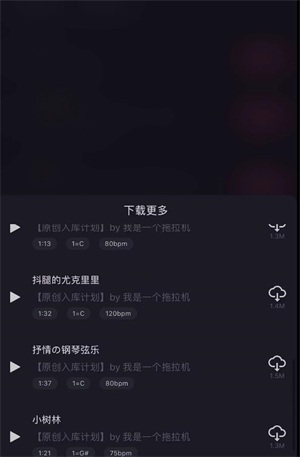 若希望获取更多曲目,可点击“下载更多”从云端资源库中选择心仪BGM,下载后即可直接调用。