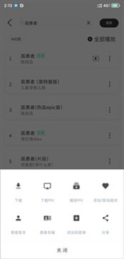 搜索结果出现后,点击歌曲右侧的三个点图标,即可进行播放、下载或加入收藏等操作。