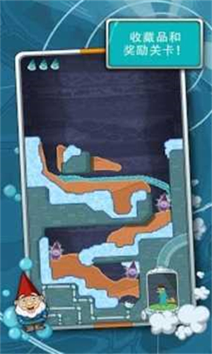 在游戏中,玩家将体验各种形态的水。切开各关卡的泥土,引导水和蒸气穿过冰、泥土和石头进入管道。游戏中,液体流动的画面非常逼真,好玩极了!
