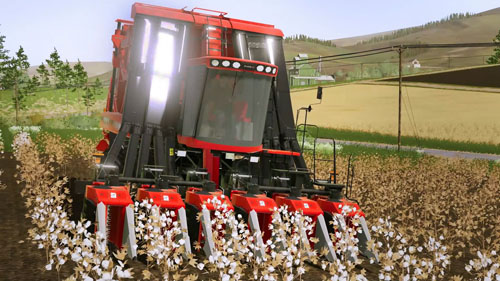 红色拖拉机为凯斯CASE7250pro,已装配中耕机,用于引导玩家熟悉耕地流程。作物收割后的茬地需重新翻耕才能再次播种。这台拖拉机虽为初始赠品,但动力强劲,能轻松牵引多种农机。