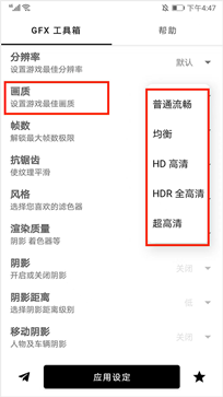 1. 独创免Root画质修改技术,免费开放所有画质选项,一键应用即可生效。
