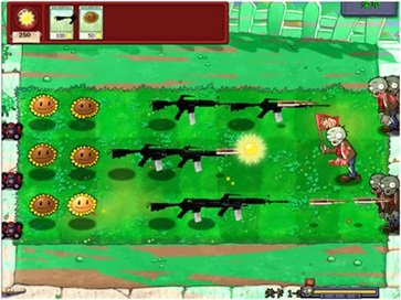 7. 枪械主题植物如加特林豌豆射手、M4A1向日葵等成为标志性创意;