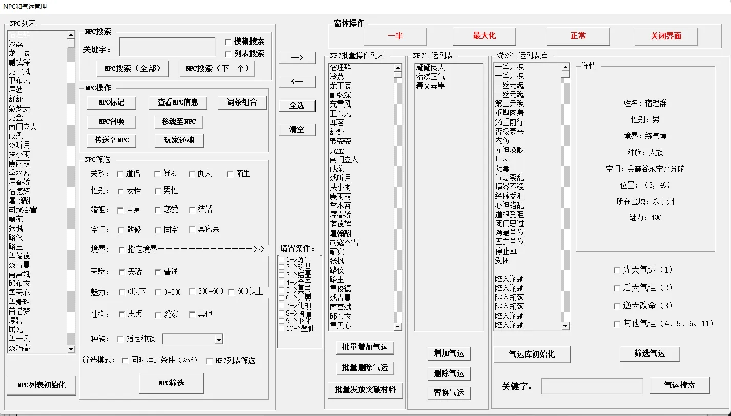 5.增强优化NPC及气运管理UI功能。