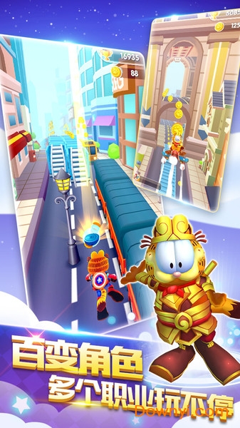 这款游戏拥有精致的画面表现,色彩搭配和谐且充满活力,为玩家营造了一个生动有趣的游戏世界。角色形象设计可爱,尤其是加菲猫的表情和动作都显得栩栩如生。